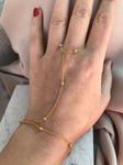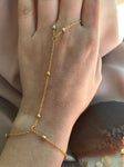 Elevate your style with our Golden Drape Hand Chain Bracelet, a delicate fusion of elegance and modern minimalism. Crafted with a fine gold-plated chain adorned with tiny gold beads, this...