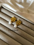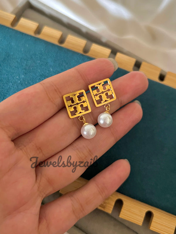 Square tory pearl earrings