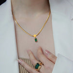 Luxurious titanium steel Emerald snake chain necklace
