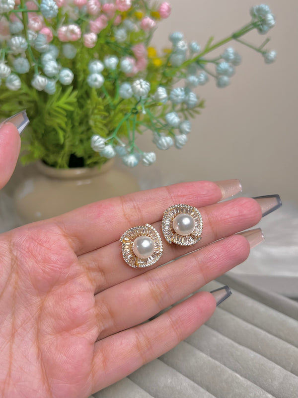 Rose pearl zircon earrings