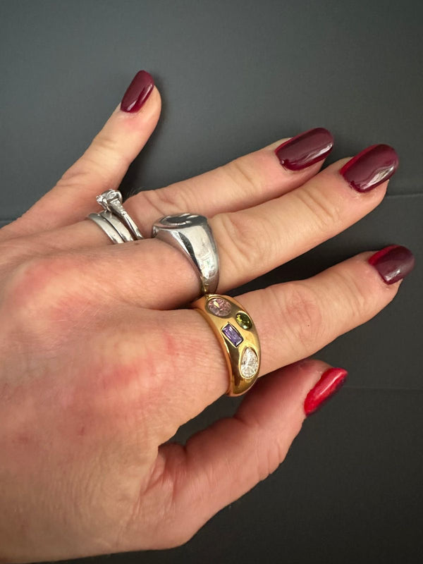 Chunky Gold Plated Zircon Ring