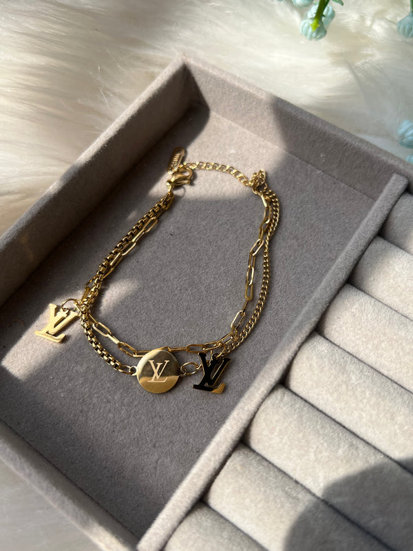 Stainless steel double layer lv chain bracelet