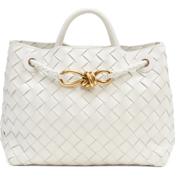 Top handle bag in supple Intrecciato leather with signature knot detail and sliding cross-body strap. This bag is eligible for Certificate of Craft. • Intrecciato leather top handle bag with...